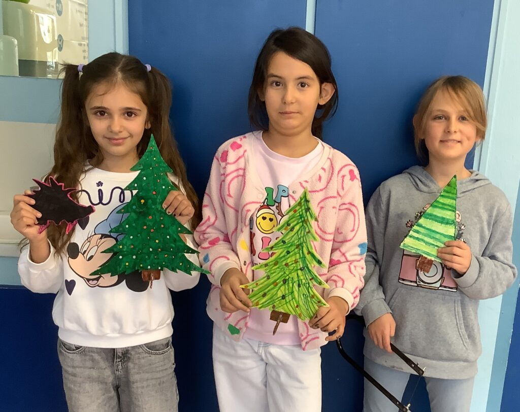In der Laubsägen AG gestalten die Kinder Weihnachtsbäume aus Pappelholz.
