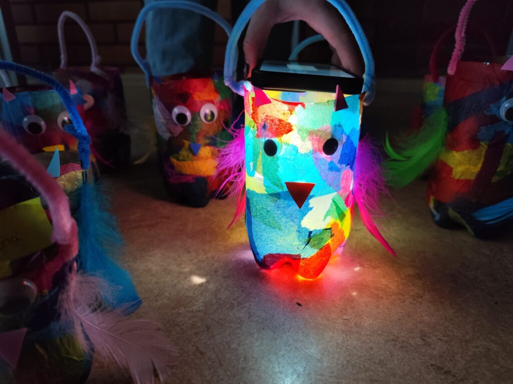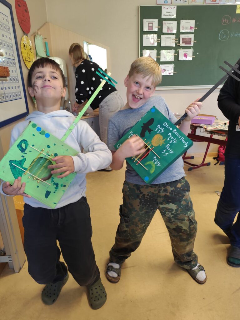 Unsere SchülerInnen hatten die Möglichkeit, mit Nadja Bender und ihrer Phantastischen Kunstschule tolle Gitarren, Planeten, Sorgenfresser und Laternen zu basteln. Wie immer kam es zu kreativen und farbenfrohen Ergebnissen, auf die die Kinder stolz sein konnten.