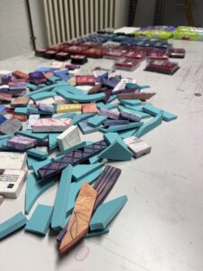 Am Ende haben wir ein Spiel gespielt: Jeder hatte ein Blatt und einen Stempel.
