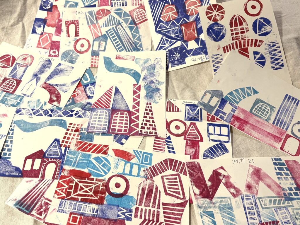 Danach durften wir eigene Radiergummi-Stempel machen.