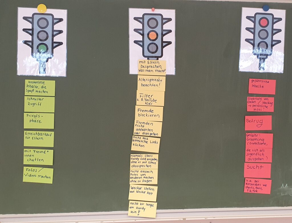 Nach einer Selbsteinschätzung über die individuelle Handy- oder Tabletnutzung folgten Informationen über Gefahren. Ziel des Projektes war es, den Kindern ein Bewusstsein über die Gefahren zu vermitteln und sich somit möglichen Schutz anzueignen.