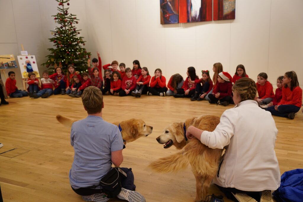 Nach dem Auftritt durften unsere Schüler die beiden Therapiehunde Rodeo und Nala und ihren Einsatz im Haus kennenlernen.