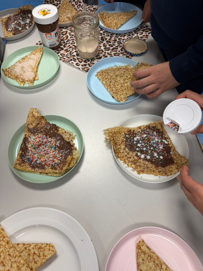 großen Spaß. Zum Abschluss durften die Crêpes noch kreativ dekoriert werden.